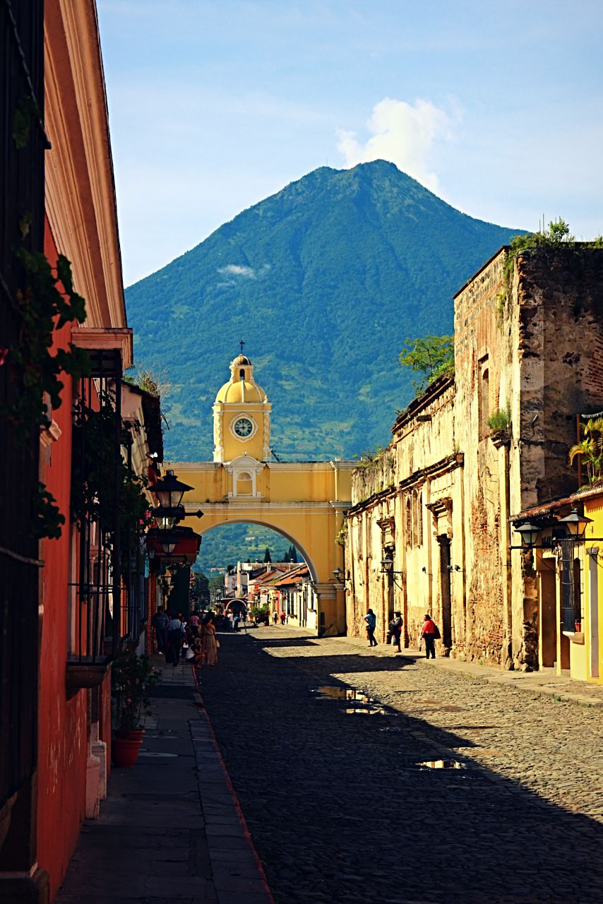 The Arco de Santa Catalina is the most important architectural landmark of Antigua. It's located three blocks from the Parque Central on 5a Avenida Norte. Try to get a photo facing South with Volcán de Agua in the background. Depending on the season it's quite challenging to get a clear shot, best advice is to get up early and take the picture in the morning.