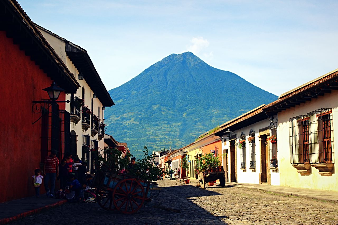 Antigua Guatemala, meaning ancient Guatemala, is a city located in the heart of the highlands of Guatemala, approximately 50 kilometres West of Guatemala City, the current modern capital. The city served as the third capital of the Captaincy-General of Guatemala (an administrative division of the Spanish Empire) for more than 200 years. The city was destroyed by a series of earthquakes in 1773, commonly referred to as the Santa Marta earthquakes, leading to its abandonment. Nowadays it's one of the major tourist attractions of Guatemala and well-known for its Spanish-colonial architecture (becoming a UNESCO World Heritage Site in 1979), a large number of Spanish schools, the close proximity to three major Volcános (Acatenango, Fuego and Agua), and its central location in Guatemala which makes it an ideal starting point to explore this great country. It can be reached from La Aurora International Airport in under one hour by taxi or minibus. All important country destinations, e.g. Flores & Tikal, Lago de Atitlán and so on, are easily accessible by minibus from here.